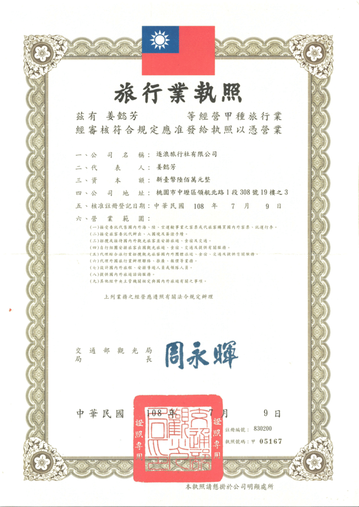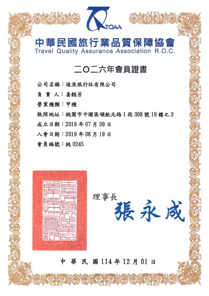 關於逐浪 專注於打造最自在、最靈活的台灣深度旅遊體驗。從人氣景點到私房秘境,從經典一日遊到量身訂製路線,我們用專業規劃,讓你輕鬆玩遍台灣每一個角落! 為什麼選逐浪 行程自由搭配:彈性安排景點,隨心微調,專屬你的節奏。台灣在地深遊:不只玩景點,還帶你認識地方文化與台灣人情味。親切貼心服務:溝通即時,需求即刻回應,旅程超放心!國內外行程諮詢:不論是台灣小旅行還是海外大冒險,都歡迎找我們聊聊,給你最合適的建議與規劃。 逐浪提供 代售各大旅行社所有國內外旅遊產品專人到府、現場說明旅遊行程包車旅遊(遊覽車 、 中型巴士 、9人座汽車、5人座汽車)旅館住宿代訂客製化公司旅遊、親子小旅行機場接送、長短途包車外國旅客台灣自由行行程規劃代辦護照、台胞證,專人到府收送件服務 交觀甲 05167|品保桃 0245|負責人:姜懿芳 訂閱逐浪電子報 獲取最新旅遊消息 Please enable JavaScript in your browser to complete this form.Please enable JavaScript in your browser to complete this form.Email *訂閱